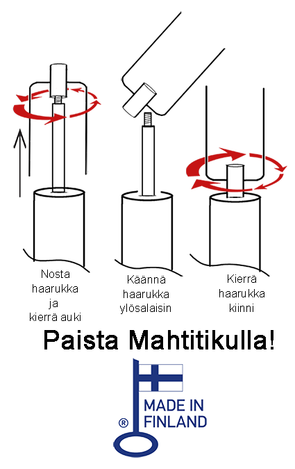 Mahtitikun haarukka irroitus ja kiinnitys.